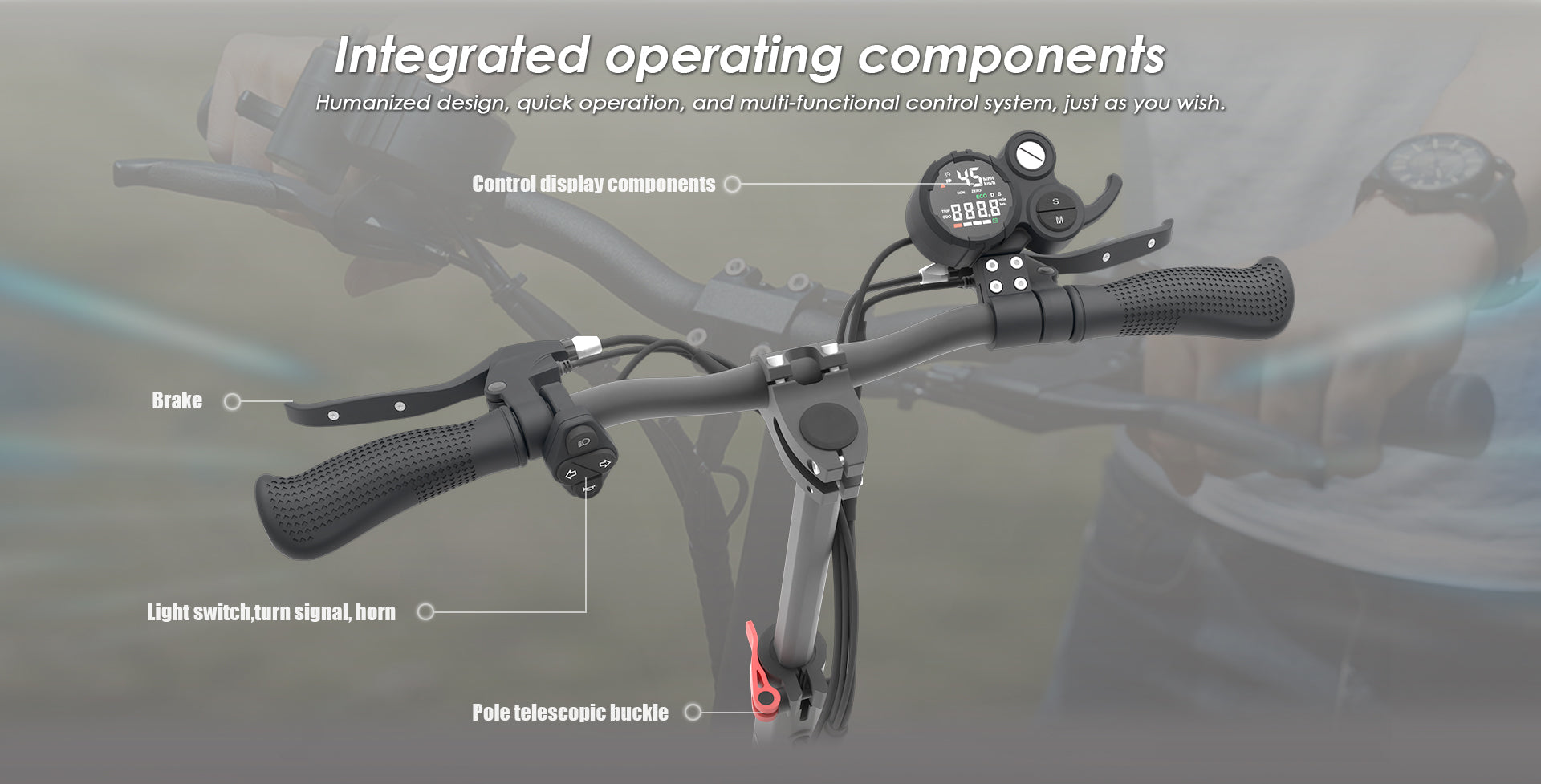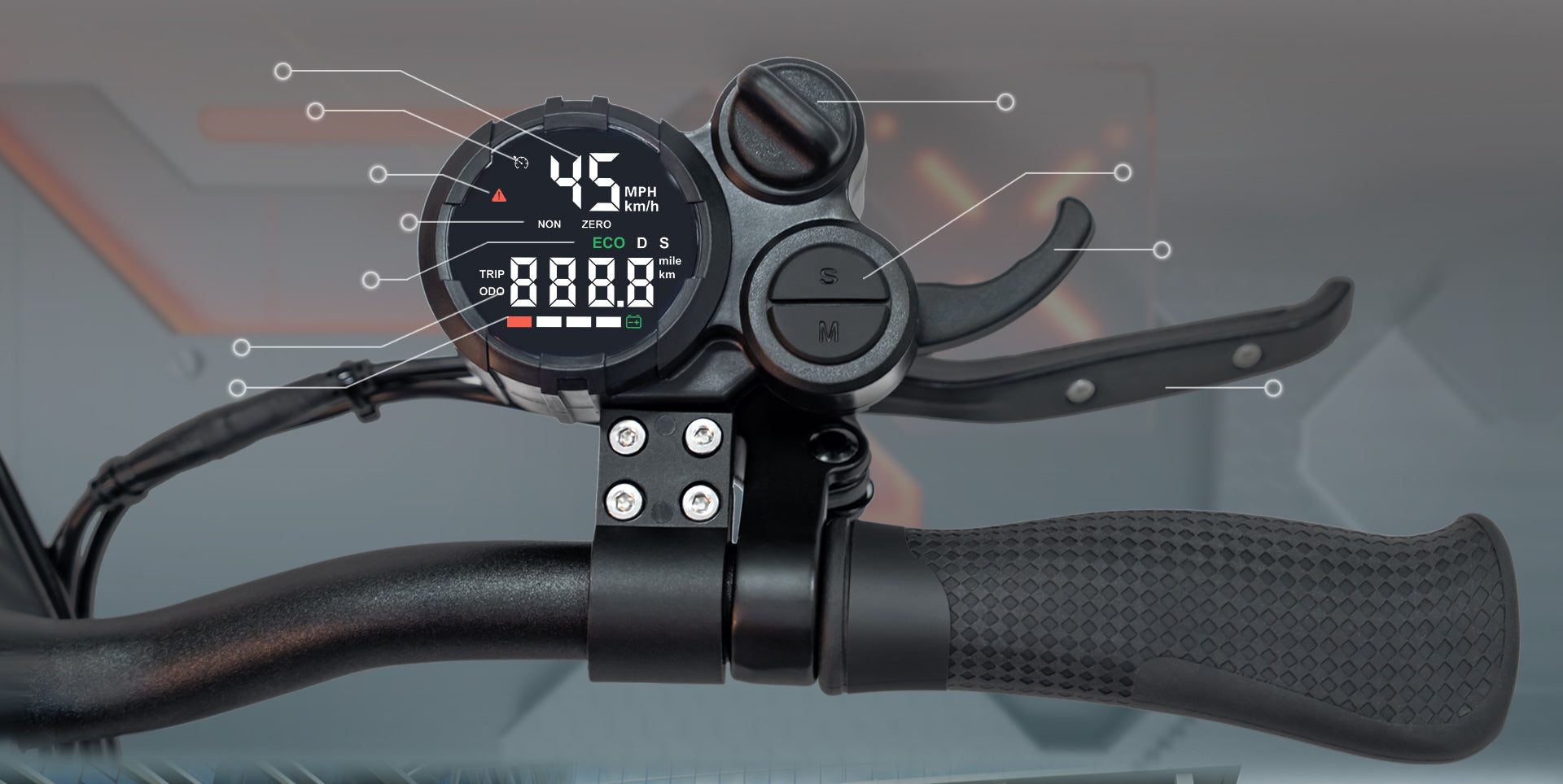 A - Phare avant B - Guidon C - Pince de pliage D - Pneu avant