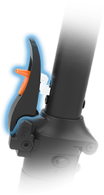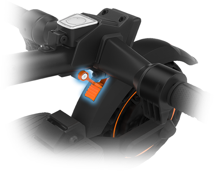 Système de freinage fiable associant frein électronique et frein mécanique au pied. Arrêts sécurisés et progressifs.